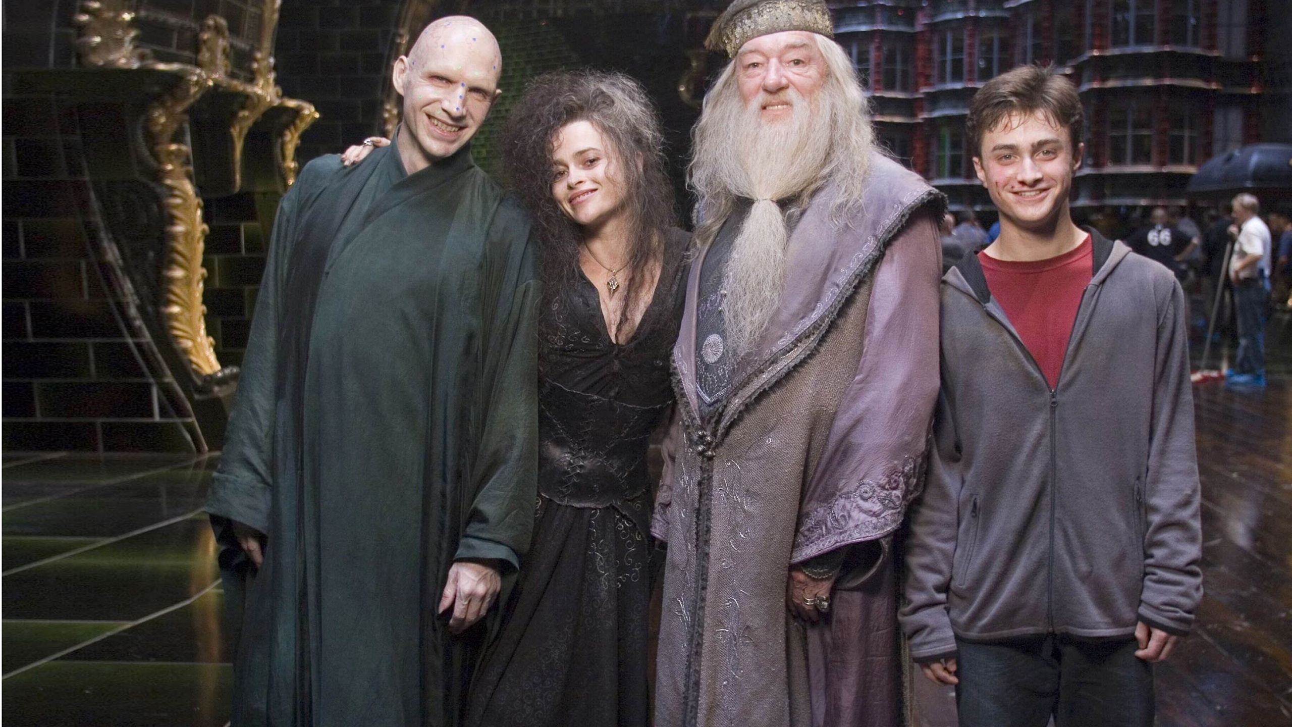 Скачать обои с разрешением 2560x1440. Картинки кадры со съемок, гарри поттер, гпиоф, альбус дамблдор, волдеморт, дэниел рэдклифф бесплатно на рабочий стол Скачать в другом разрешении:
