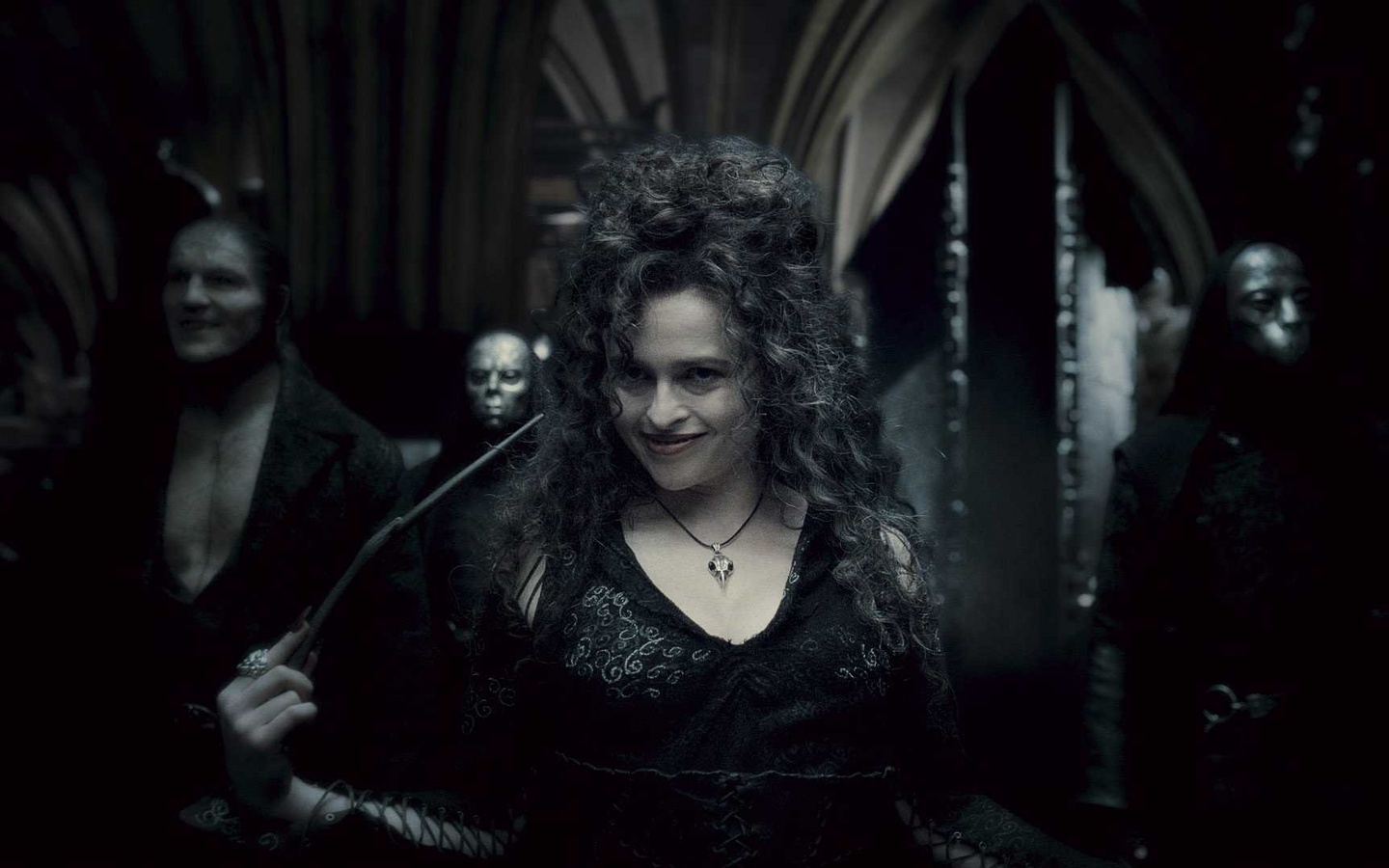 Скачать обои с разрешением 1440x900. Картинки беллатриса лестрейндж, хелена бонэм картер, пожиратели смерти, фенрир сивый, дэйв леджено бесплатно на рабочий стол Скачать в другом разрешении: