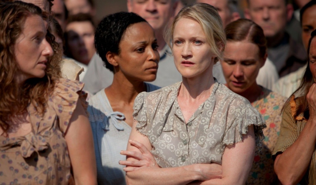 Скачать обои с разрешением 1024x600. Картинки голодные игры, миссис эвердин, пола малкомсон, церемония жатвы бесплатно на рабочий стол Скачать в другом разрешении: